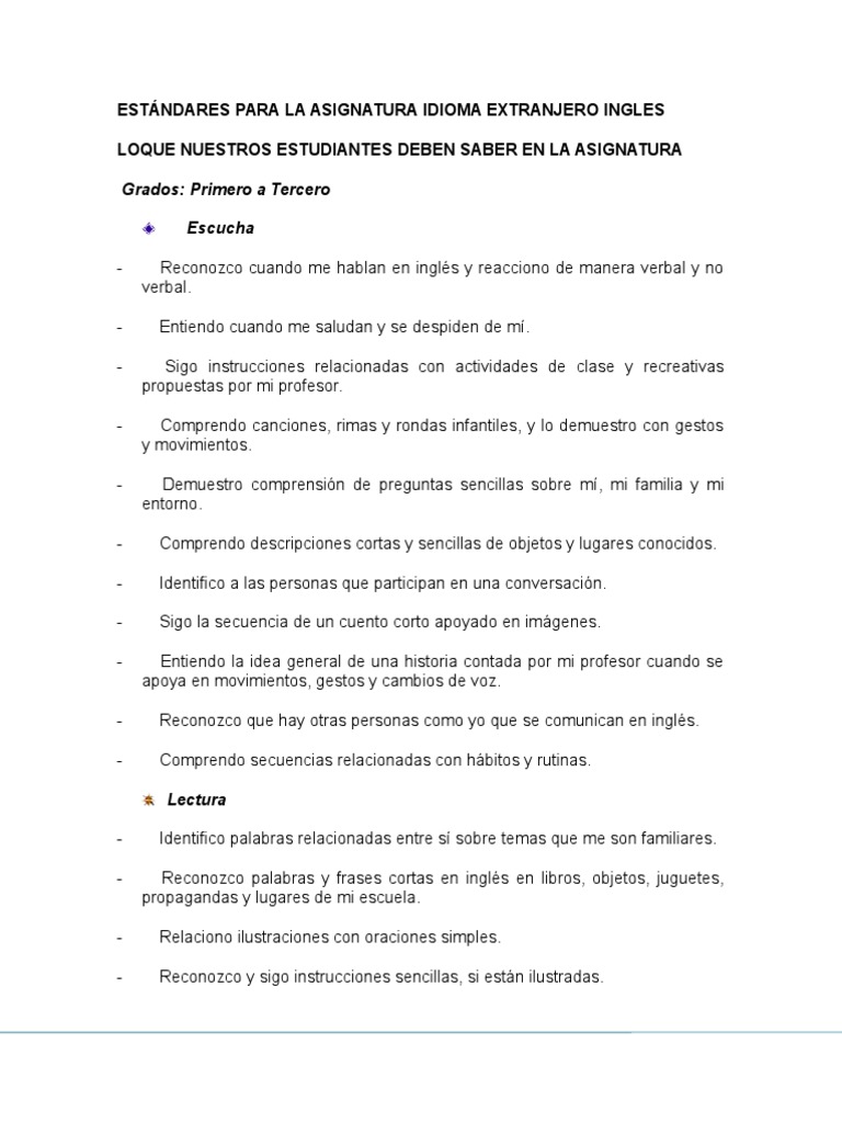 Estndares Para La Asignatura Idioma Extranjero Ingles 1233283265603869 1 Conversacion Lectura Proceso - Tambien se le define como perfecta por la sonoridad que le representa.